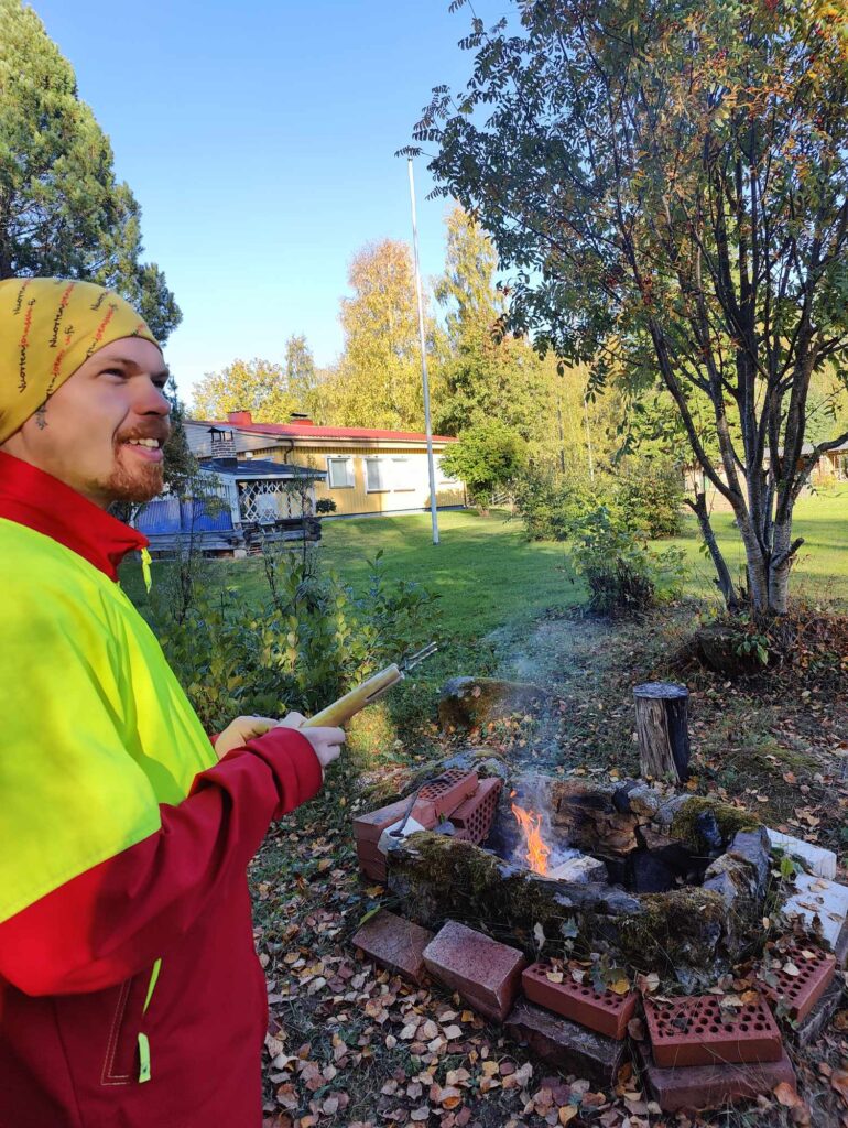 Touhujen lomassa paisteltiin makkarat ja juotiin pillimehut. Oli pikkutyöläiset innoissaan. Illan päätteeksi sohvalle katsomaan elokuvia.
